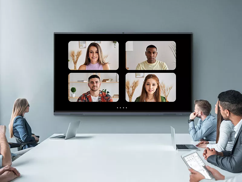 Interactive whiteboards allow remote video participants to join a meeting, and by appropriately mounting a video on a screen or utilising a camera integrated into the screen, these remote participants can view the meeting room and have more input than they potentially would by merely dialling into a call.